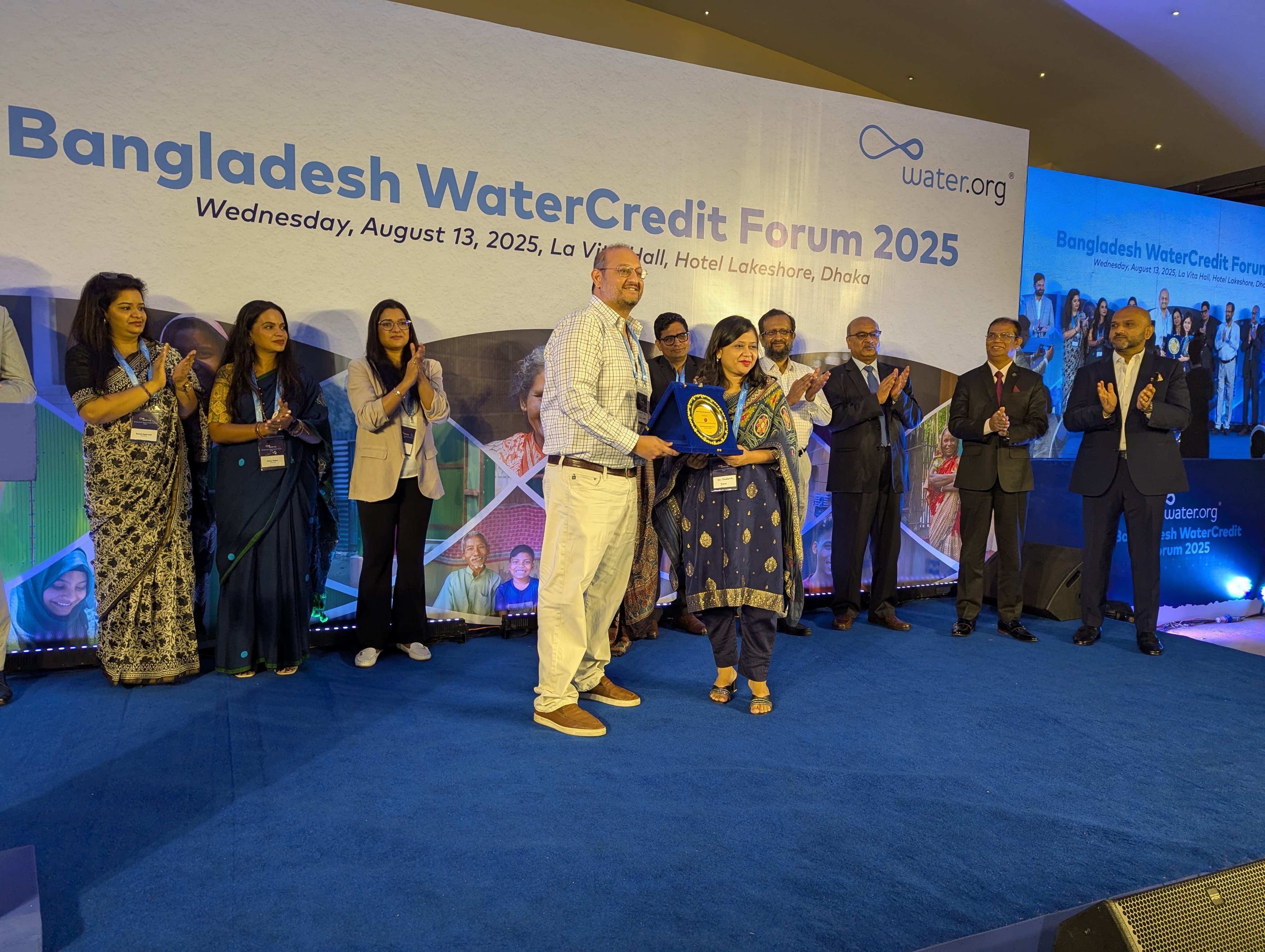 On 13 August 2025, Institute for Inclusive Finance and Development (InM) was awarded the Partner Recognition Award by Water.org at the Bangladesh WaterCredit Forum 2025 for its outstanding contribution in advancing the WCAD model through its partner organisations (POs) in Bangladesh. On behalf of InM, Dr. Farhana Nargis, Research Fellow, received the award. InM in partnership with Water.org has been implementing the WCAD model through its POs since 2021. By 2025, this impactful collaboration has transformed lives of about one million people across Bangladesh through access to safe water and improved sanitation facilities.