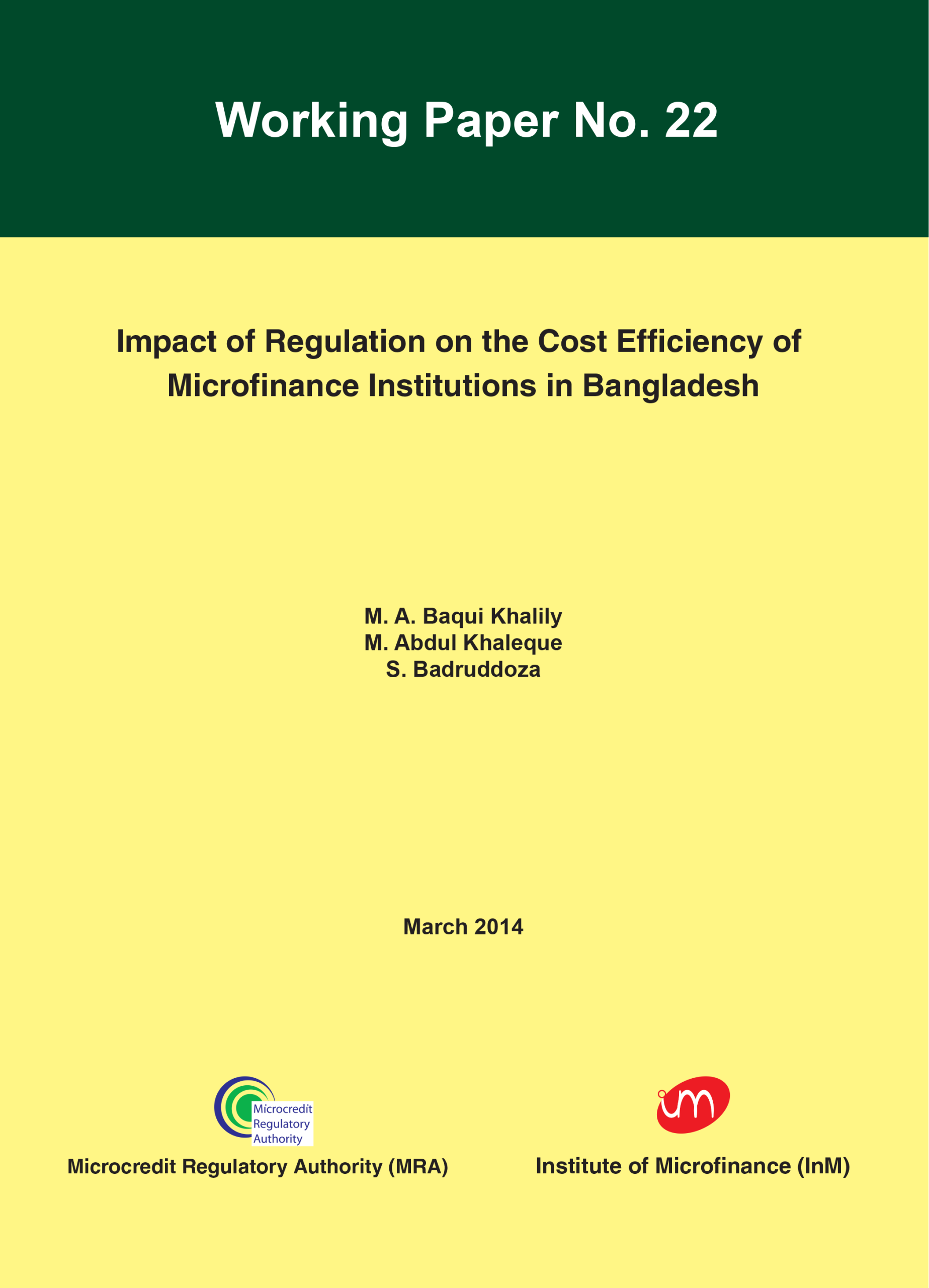 Impact of Regulation on the Cost Efficiency of Microfinance Institutions in Bangladesh