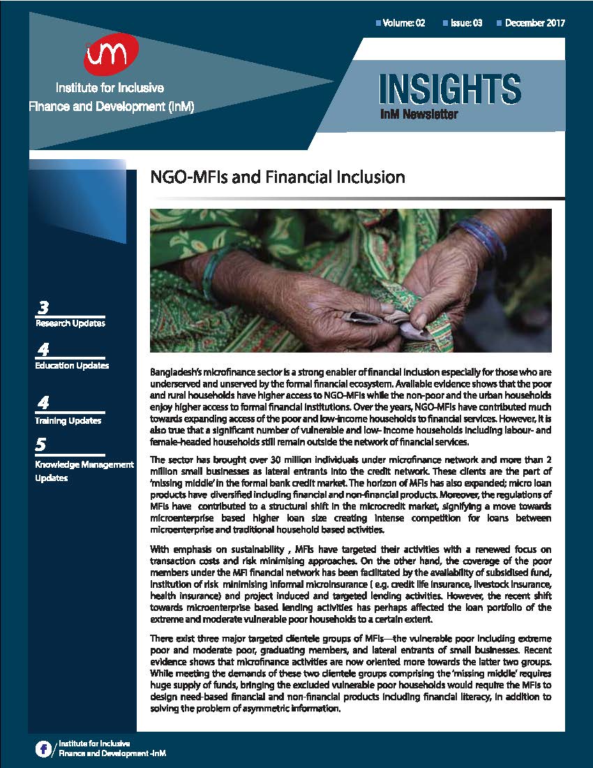 The Institute for Inclusive Finance and Development (InM) is registered as an independent non-profit institution under the Societies Registration Act 1860.