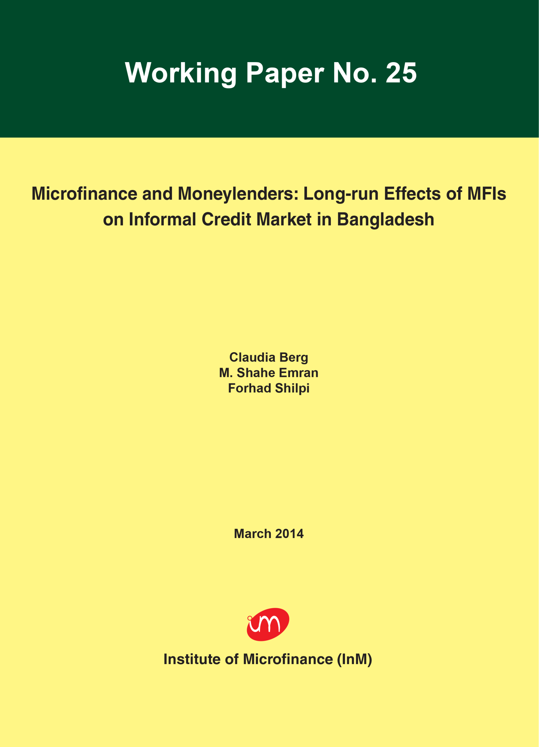 The Institute for Inclusive Finance and Development (InM) is registered as an independent non-profit institution under the Societies Registration Act 1860.